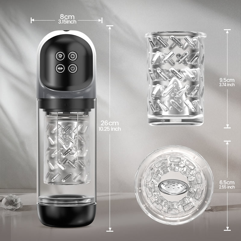 Multisensorisches Vergnügen: Tauchen Sie ein in eine Welt der Empfindungen mit Saugen, Rotation, Pulsation und Läppen - alles in einem Masturbator. Schwelgen Sie in einem fleischlichen Konzert aus oralen und penetrativen Reizen, die die Inbrunst der menschlichen Intimität nachahmen.