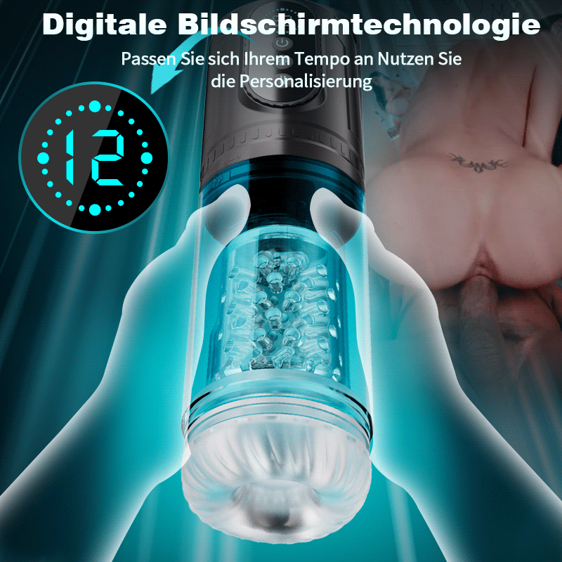 9 Arten von einziehbarem Wirbel gepaart mit 9 Arten von Saugen für ein unvergleichliches Penis-Masturbationserlebnis.