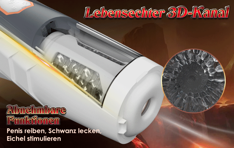 Das transparente Sichtfenster kann alle Bewegungen des Penis in den 4 gemischten Modi sehen und das Geheimnis des Oralsex gründlich erforschen.